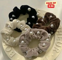2 PC Pearl Scrunchie (Multicolor) Premium Silk Satin Scrunchies