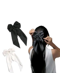 Silky Satin Hair Barrettes Clip for Women Large Bow Hair Slides Metal Clips French Barrette Long Tail Soft Plain Color Bowknot Hairpin Holding Hair Black White Pack 2 Women Big Bow Barrettes Girl's Satin Hairclips Long Ribbon Hair Pins Accessories For Party