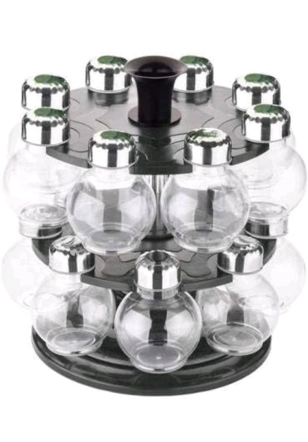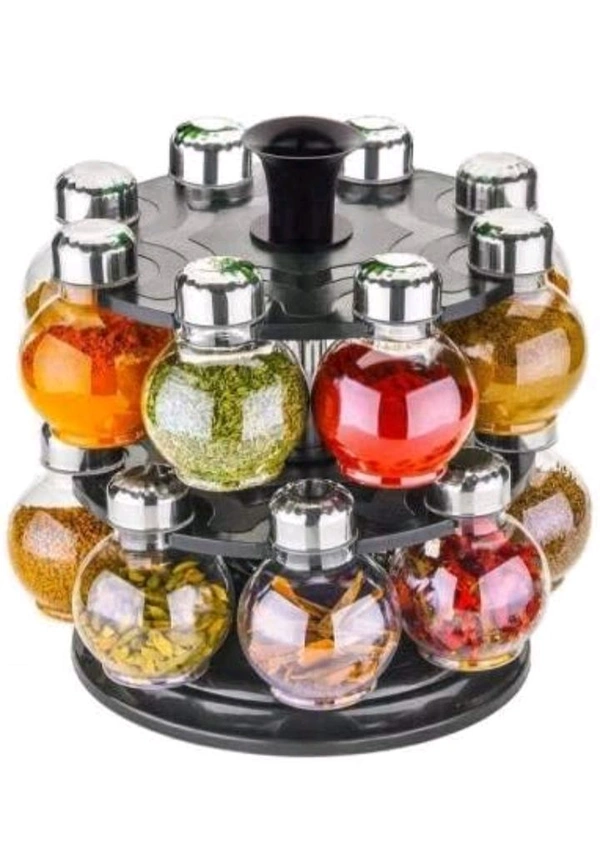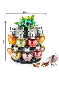 Jaragar New 360 Degree Revolving Round Shape Transparent Spice Rack, Container (Black) Round Multipurpose Revolving Plastic Spice Rack 16 Piece Condiment Set